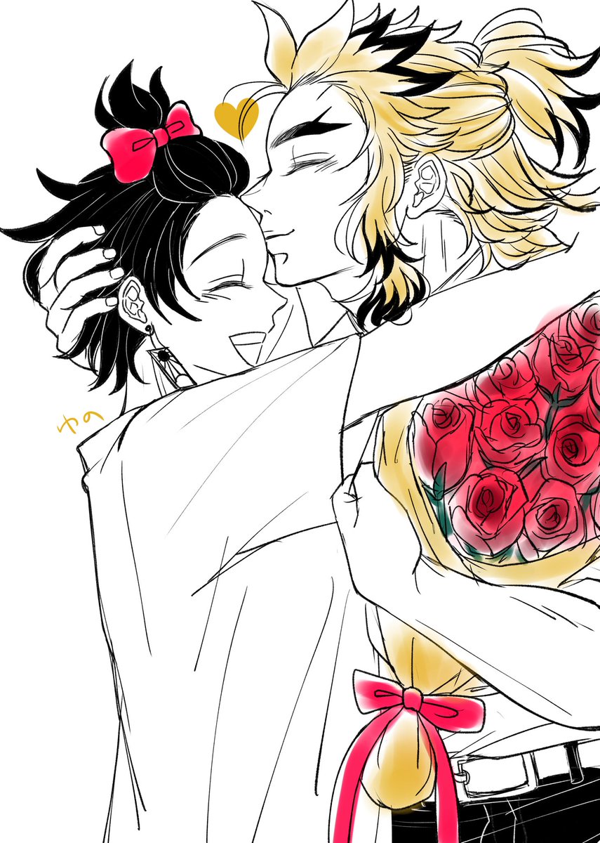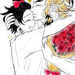 #rntnワンドロワンライ キ🏫同棲してる🔥🎴 「お誕生日おめでとうございます!なんと!🎁は俺です!」「ありがとう!!隅々まで頂こう!!」 ◇お題 『花束』 『おいしく召し上がれ』 ◇5月のお題 『🔥誕』 ◇色お題 『金色』 ワンドロできるように頑張ったけど15分程オーバーしました😢