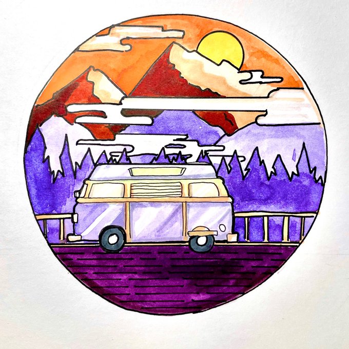 Inktober: Travel. Later on I’d probably make a digital version of this. Maybe make it into a sticker! #inktober #inktober2022 #travel #ink #fountainpen #graphicdesign #roadtrip #inktoberprompts #inkdrawing #drawing #sketch