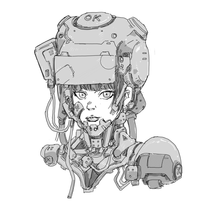 rkgk 6 Gonna try and do more of these sketches for warmups and breaks #rkgk #rakugaki #sketch #scifi #cyberpunk #girls #robotgirls #mecha