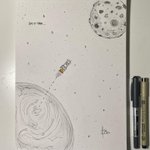 Day 7: Trip 🚀 Trip to the moon!🌕 Today’s drawing is a bit simpler yet I hope you like it! :)🫶✨ (Sorry si posted later today 😅😓) #Inktober #inktober2022 #inktoberday7 #Inktober2022trip #space #moon #rocket @inktober #art #ArtistOnTwitter #ink