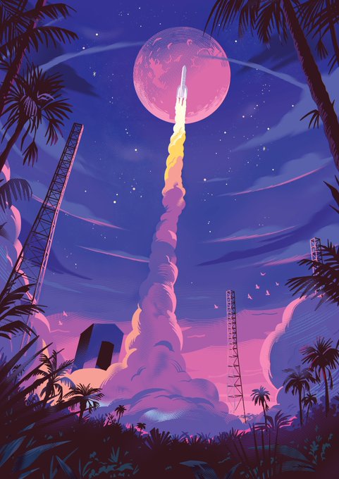 🚀Next stop: the launch pad! We continue our year-end series of illustrators' artworks with this one by @stevescott3000. You can find Ariane 6 soaring toward his pink sun in our online shop! bit.ly/SpreadshirtAri… #ArianeGroup #Ariane6 #SteveScott #illustration #Rocket