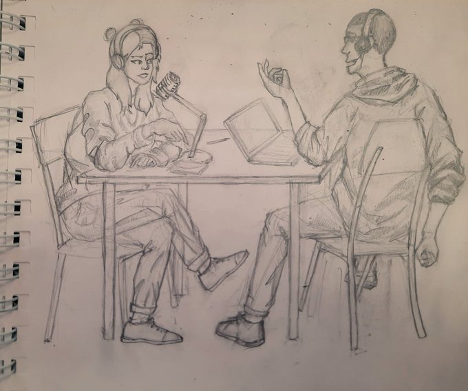 Кривой скетч с rocket duo Но я не нашла никого кто бы рисовал их как подкастеров, так что пусть будут. Ссылку на фанфик я в следующем твите скину когда найду #rocketduo #nihachufanart #jackmanifoldfanart