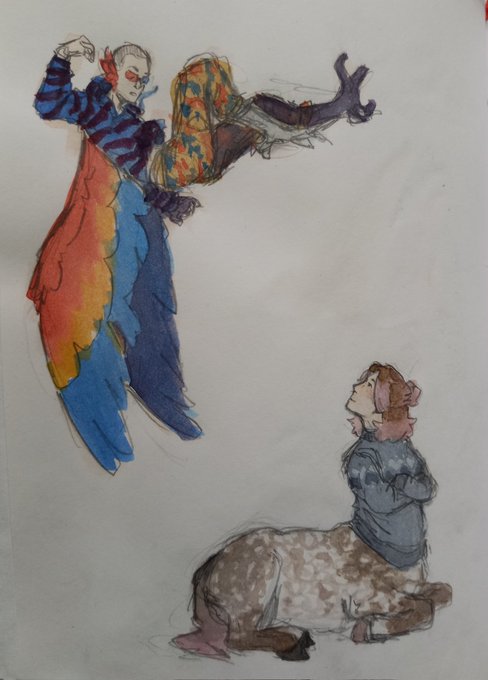 I've drawn parrot Manifold like a week ago but now he has centaur Niki accompanying him :D #JackManifoldfanart #nihachufanart #rocketduo