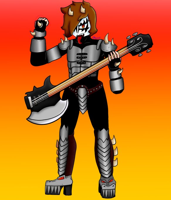despues de dias planeando y haciendo este dibujo, porfin lo termine, es el dibujo con mas detalle que tengo, mi oc haciendo cosplay de @genesimmons espero que les guste #KISS #cosplay #digitalart #rocknrollart
