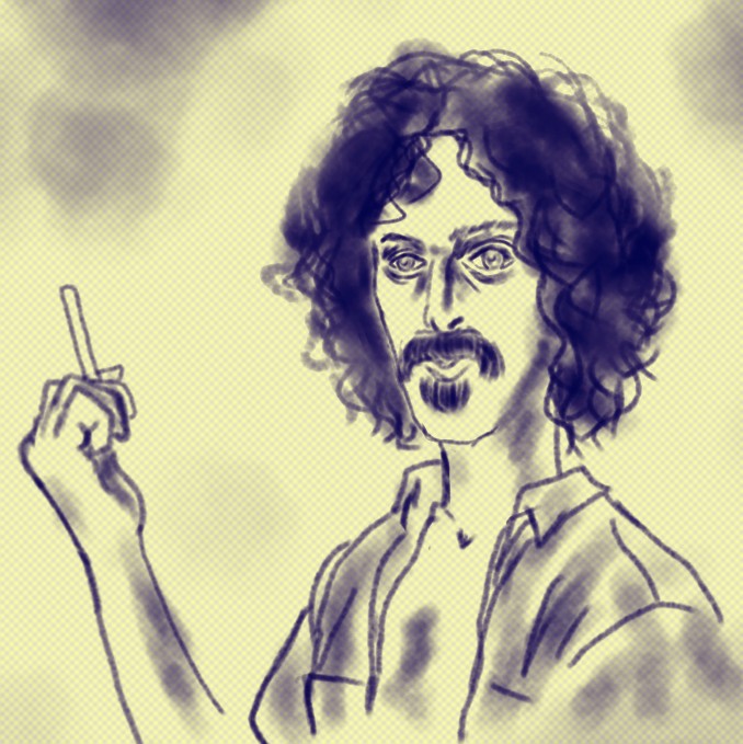 今夜のお絵描き。 久しぶりに…。 フランク・ザッパ。 「俺の音楽がなぜ複雑なのかって?世の中がそうだからさ。」 #お絵描き練習中 #イラスト #FrankZappa #rocknrollart