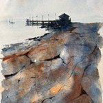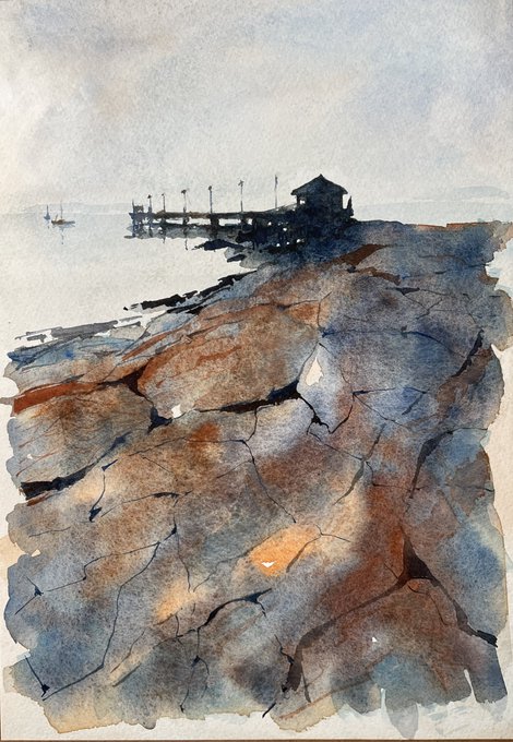 "Rocky Shore" I love to walk on a rocky shore and record the ever changing weather - I think we have rain on the way #seashore #seaside #wednesdaythought #seascape #landscape #coastalart #art #artist #artwork #rocks #weather #rain #shoreline #misty