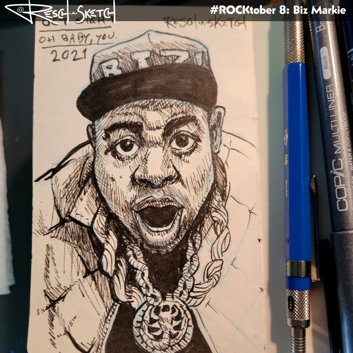 #ROCKtober day 8, Biz Markie. !! Swipe right for a trivia question !! #rocktober2021 #inktober #inktober2021 #biz #bizmarkie #ripbizmarkie