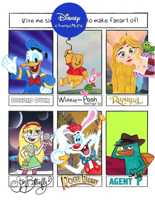 And thus my completion of my #SixDisneyFanartsChallenge Leave a comment who your favorite #sixdisneyfanarts #SixFanarts #DonaldDuck #winniethepooh #tangled #rapunzelstangledadventure #StarVsTheForcesOfEvil @DaronNefcy #rogerrabbit #perrytheplatapus #agentp #phineasandferb