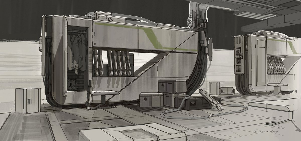 In an early version of Rouge, we had these sort of power units/lockers. Which would have been used as a makeshift bed in one scene. I believe it took place on Dantooine...I think. The idea was scrapped before build. #Rogueone #StarWars #conceptart