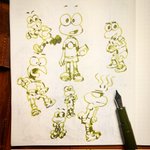Some 🐸 doodles for Friday! Hope you have a great weekend! ♥️♥️♥️ For pen geeks: Sailor music nib with Rohrer & Klingner Alt Goldgrun ink #doodle #fountainpen #sailorfountainpen #rohrerandklingner #tomoeriverpaper #galenleather