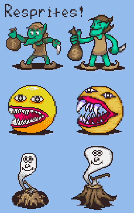 Happy thanksgiving! Yesterday I decided to update some enemy sprites for @Isaiah_mark_2 ‘s earthbound romhack; From Another Mother (+ an entirely new octopus boss enemy!) #pixelart #earthbound #romhacking