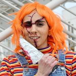 Chucky al #Romics2022 Wanna play?🔪 9.04.2022 @ChuckyIsReal @RealTomHolland @Brad_Dourif @JenniferTilly @celisemccarthy @alex_vincent @fionadourif #chucky #labambolaassassina #childsplay #cosplay #cosplaygirl #horror #cosplayer #cosplayergirl #movie #goodguys #chuckydoll