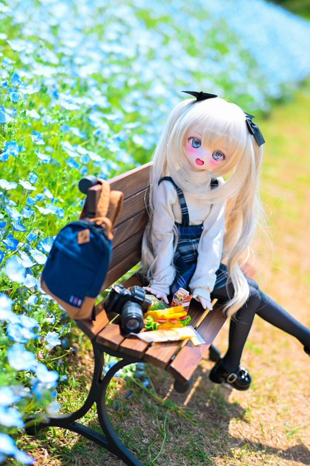 ⁎ .。❀舞い散る木洩れ陽の桜坂゚❀。: ゚ みゆ:あっちも綺麗なのです❣€===⸜( * ॑꒳ ॑*)⸝ ❀シュタタタ らいと:あっ、走ったら…💦 #RonshukaCouture #ドールと桜 #MDDはいいぞ