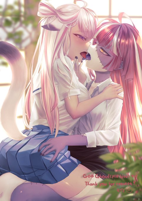 Ollie offered to teach Rora how to french during her Apex stream😳: youtube.com/clip/UgkxPoErz… They were so cute with each other so I decided to ask @mgm_mog_mgm to draw their private lesson, gorgeous🥰 #GraveyART #RorArt
