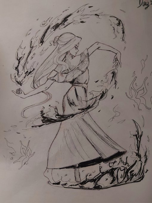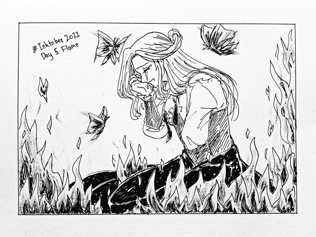 Day 5 : flame "Crimson Witch Of Flames, The fair lady,the Eighth of the Eleven Fatui Harbingers, La signora... And her real name is Rosalyne-Kruzchka Lohefalter" #inktober #inktober2022 #genshinimpact #lasignora #signora #genshin #rosalyne #fatui