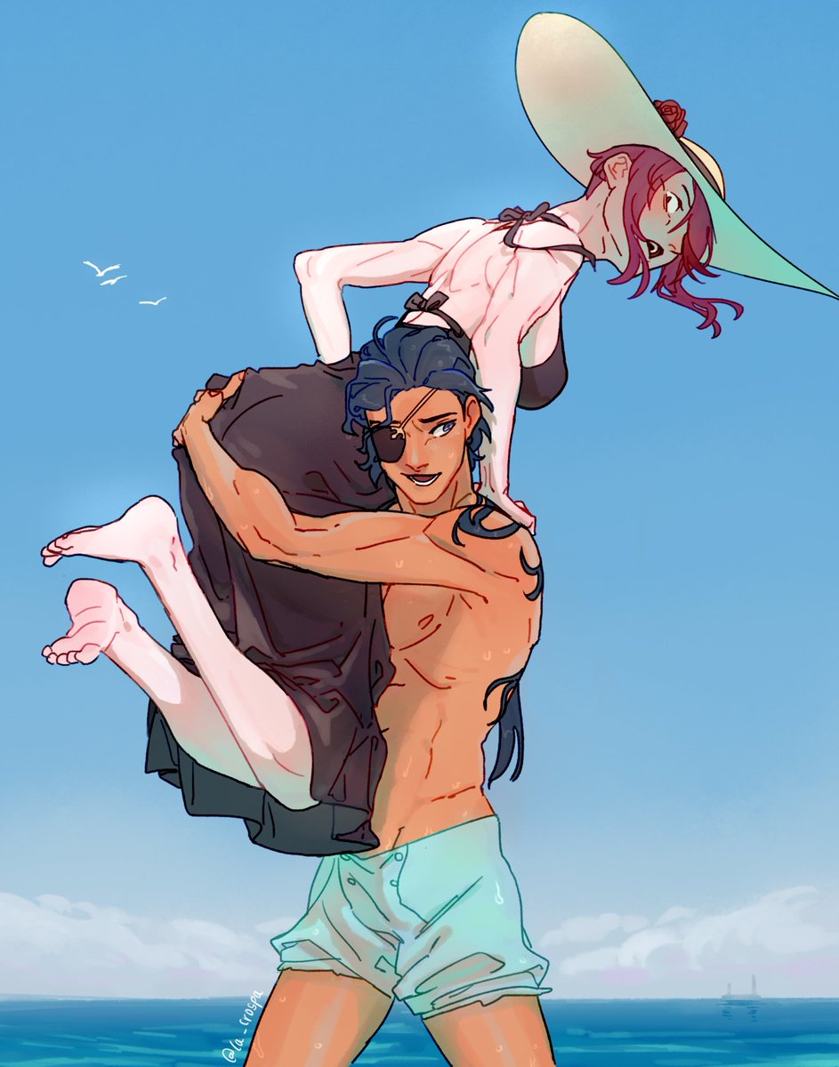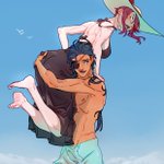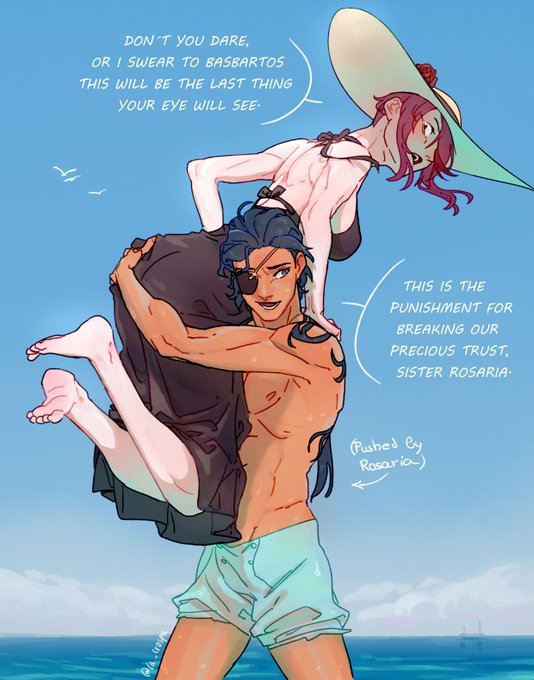 Just a quiet beach day in Mond #Kaeya #Rosaria #Genshinlmpact #genshinimpactfanart #Kaeyafanart #rosariafanart