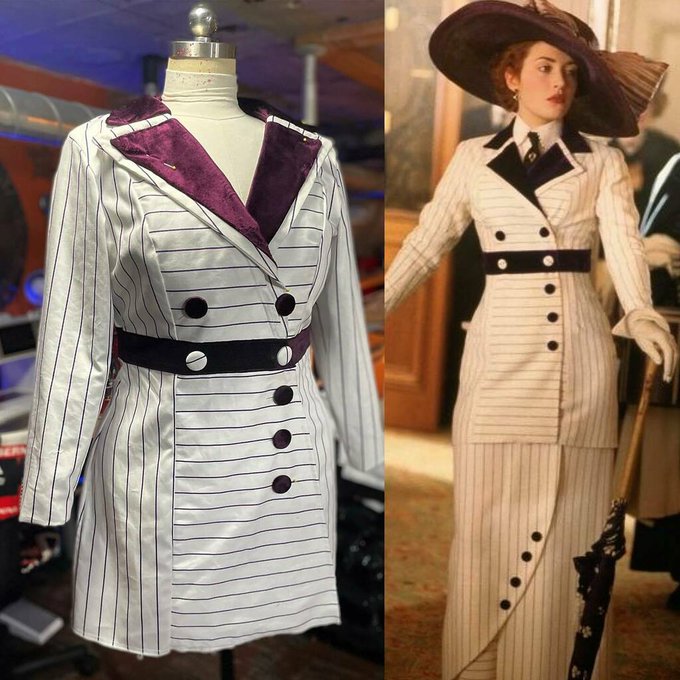 The outfit is complete! I have closures and accessories left. I have believe it’s finished and just in time for the 110th anniversary of the Titanic. 🌹🚢 ___ #rosedewittbukater #titanic #rosedewittbukatercosplay instagr.am/p/CcE6kqhMBxw/