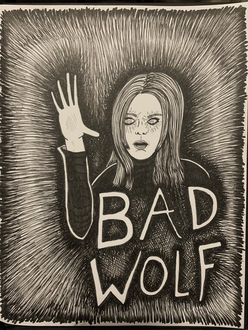 Saturday catch up for yesterday, day 21 of #Inktober2022 The word prompt was #BadDog...but I decided #BadWolf was better 😊 #DoctorWho #RoseTyler #TheMoment #Inktober #InkArt #Art