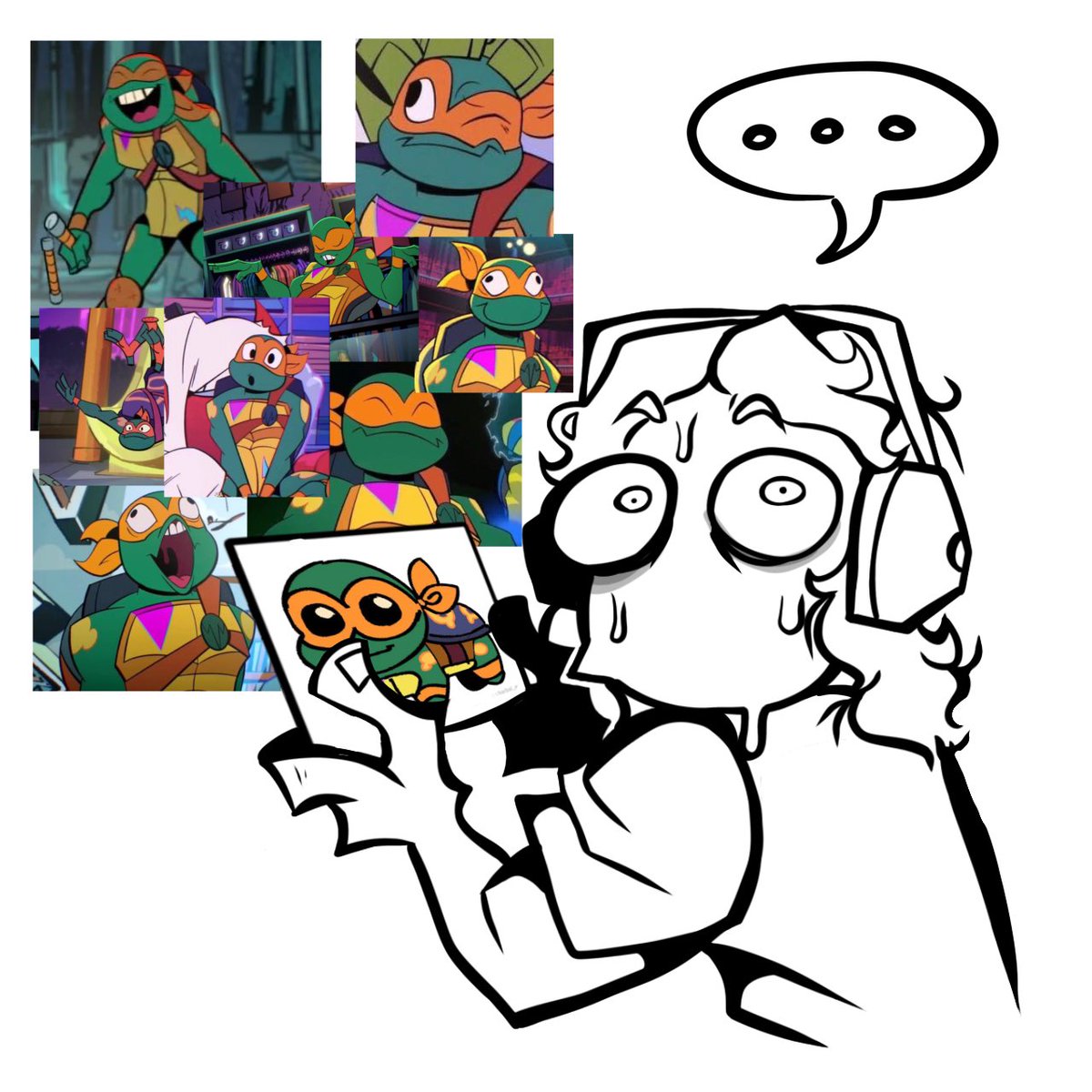 tfw ur baby brother pops up on ur shell randomly and scares the daylights out of you!!! #rottmnt #rottmntfanart #rottmntmikey #rottmntraph #RiseoftheTMNT #UnpauseROTTMNT #RiseSeason3 #rottmntseason3
