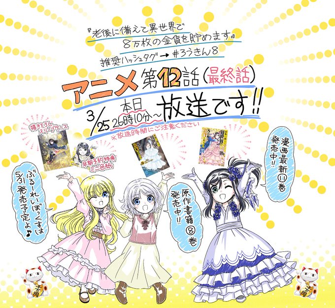 アニメ #ろうきん8 最終話までご視聴頂きありがとうございました~!!楽しい時間を共有出来て良かったです!! アニメ公式Twitter↓ @roukin8_anime アニメ公式サイト↓ roukin8-anime.com #roukin8 #老後に備えて異世界で8万枚の金貨を貯めます