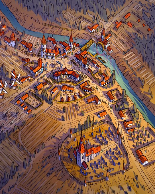 Let's start this year with a new town map! Could we give it a beautiful name though? #dnd #dnd5e #dndmaps #artwork #dndart #fantasyart #rpg #rpgart #tabletop #tabletopgames #dungeonanddragons #art #dungeonmaster #town #worldbuilding #fantasy