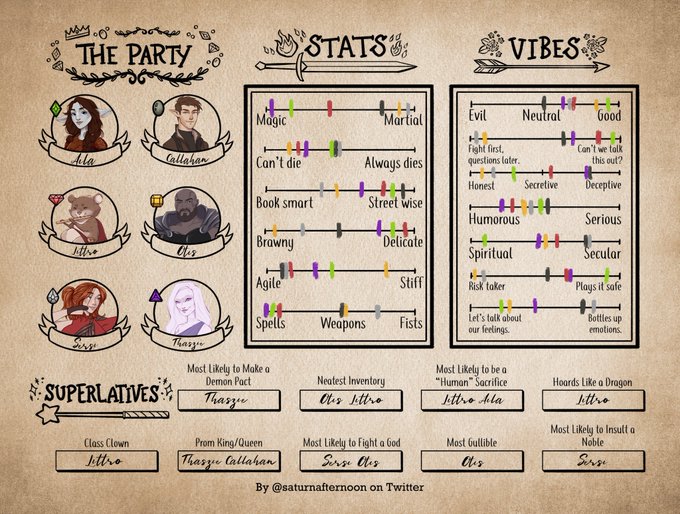 Uma edição com o template feito por @saturnafternoon com a party da nossa Campanha Crônicas de Udiopea ✨ #supervantagem #dnd5e #dndbr #rpgbr #ttrpg #rpg #canalderpg #rpgdemesa #crônicasdeudiopea #dndart #rpgart #dndtemplate