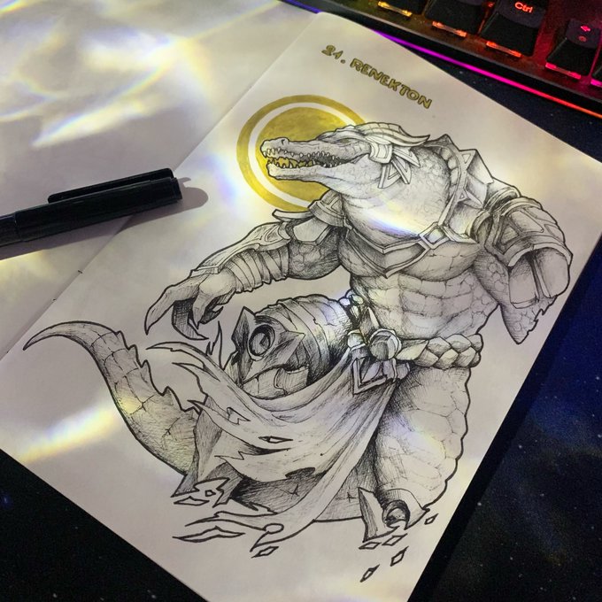 • Inktober day 21 : Renekton • Le Dévoreur des sables ! Des amateurs du petit crocodile ? 😊 ••• #renekton #shurima #runeterra #leagueoflegends #fanartlol #inktober2022 #inktoberchallenge #drawingsketch #drawingoftheday #inkart #inkartist #dailyart #sketchbook #lineart