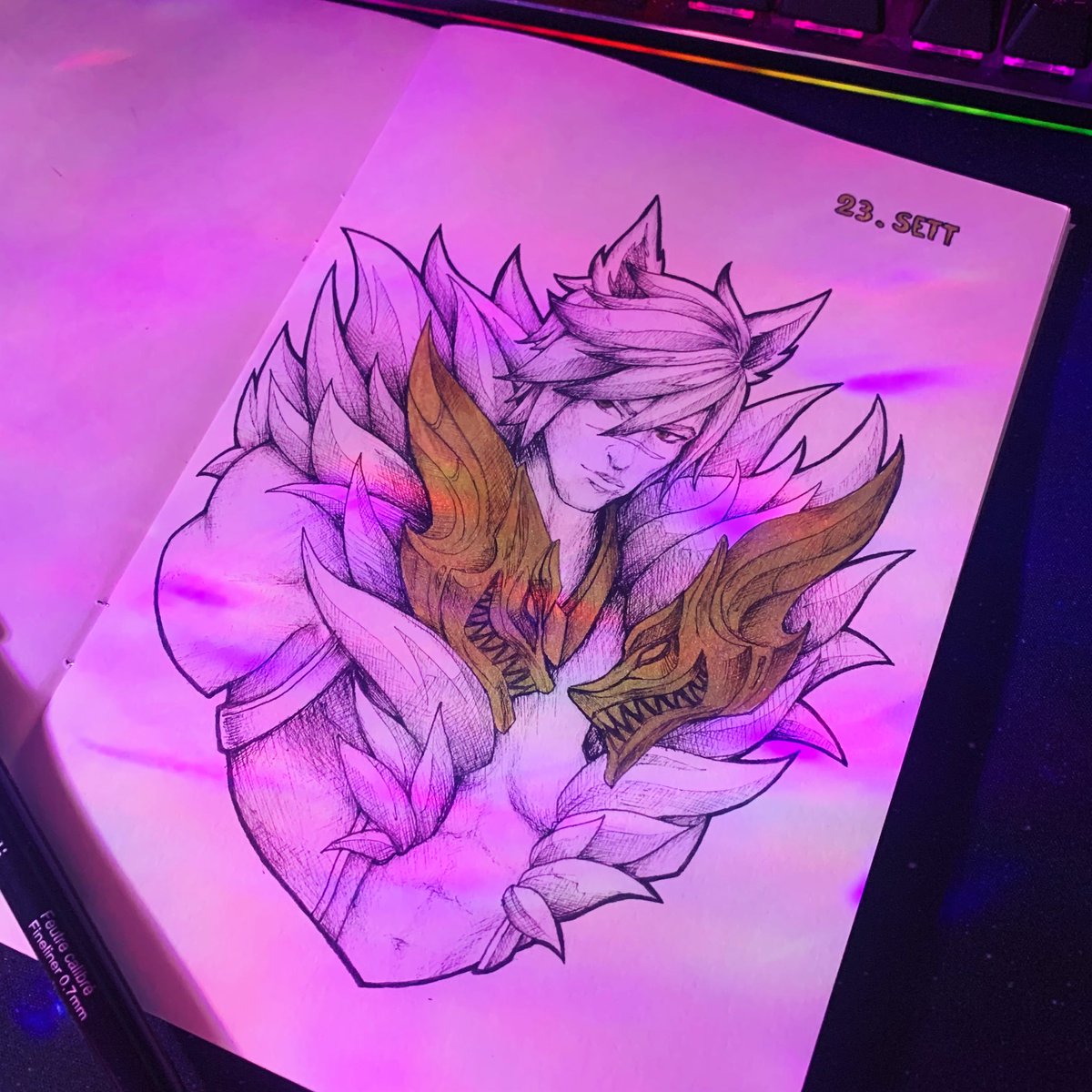 • Inktober day 23 : Sett • Aujourd’hui c’est au tour de Sett d’avoir son petit dessin. Malgré son air bagarreur il est quand même attachant. Et vous, vous aimez le Patron ? ••• #sett #ionia #runeterra #leagueoflegends #fanartlol #inktober2022 #drawingchallenge #wildrift
