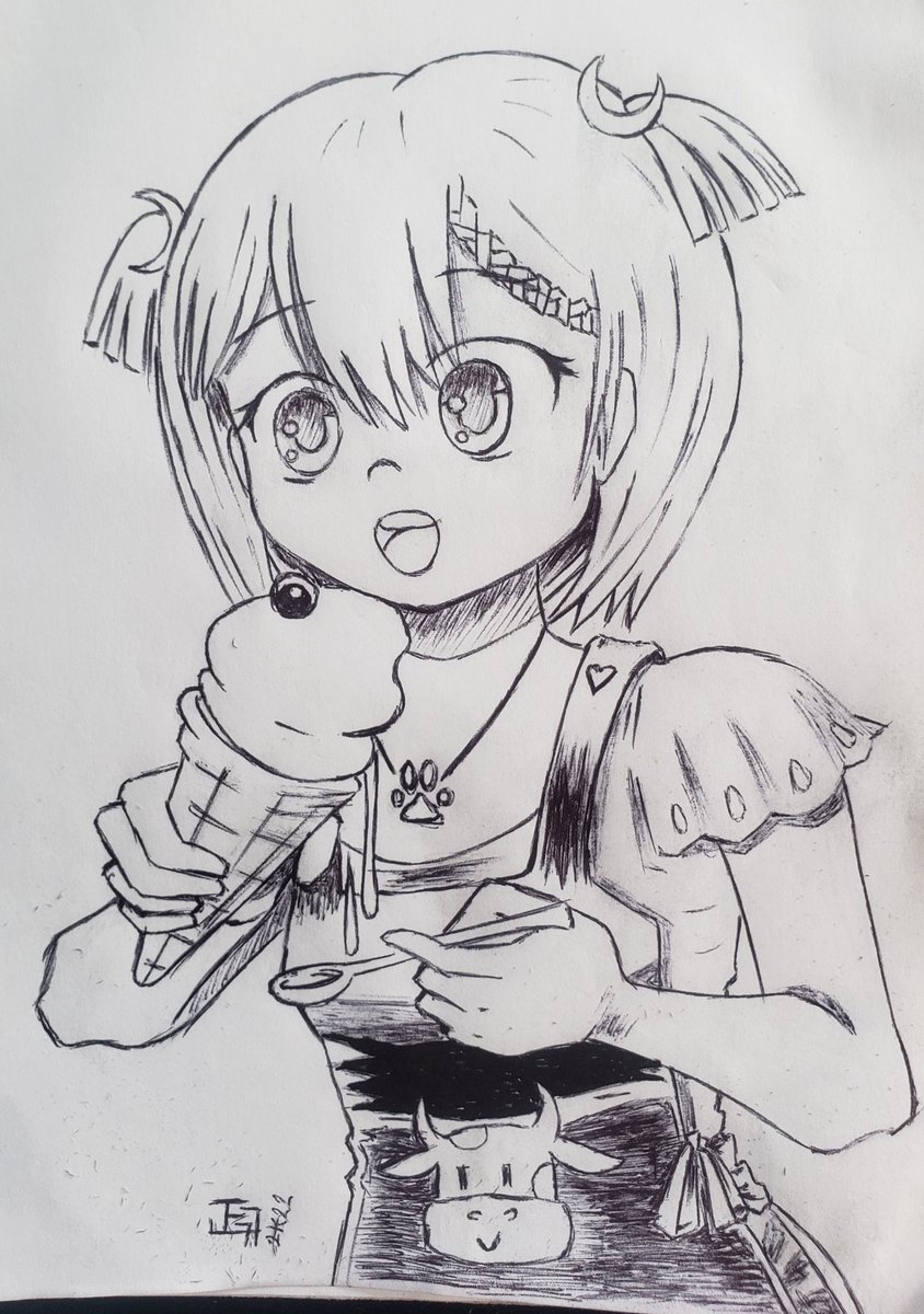 Day 2 Lunita disfrutando un rico helado 😋// Lunita enjoying a delicious icecream. #rurillust #rurineluna #inktober2022 #Rurinktober #VtuberES #vnekoctober
