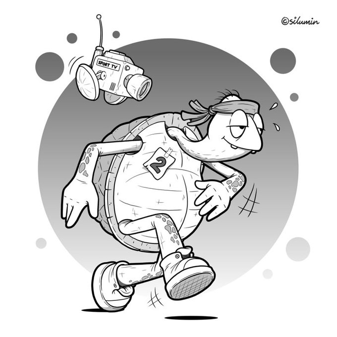 "Żółw Robert zdawał sobie sprawę, że bez skorupy pędziłby szybciej, ale nie lubił bez wyraźnej potrzeby wychodzić z domu." Inktober 2022, dzień 2, scurry #humor #rysunek #inktober2022 #inktober2022day2