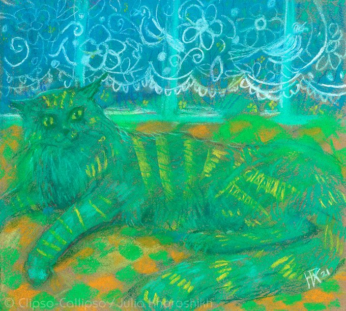 Such a wonderful news I got from @SaatchiArt - my "Turquoise Cat" was featured in this week collection! Thank you so much, team! Kinda surprised by the choice - it was a joke work, painted for my little student as an example of a cat :) #saatchiart #ArtistOnTwitter #catpainting