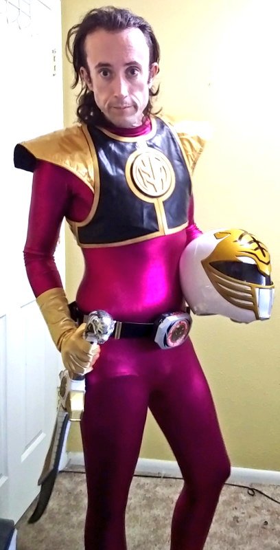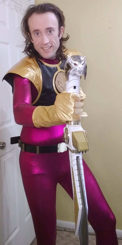 I'll be posting more of my custom "return of Tommy" cosplay on my IG this week. Gonna don the pink suit again with my EVA foam shield soon, too. I really dig these colors together. #PowerRangers #cosplay #whiteranger #mmpr #cosplayer #PowerRangerscosplay #saba #kibaranger