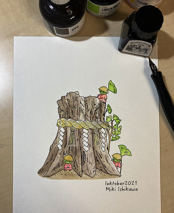 1日遅れで6日のお題「精神/SPIRIT」。 ずっと親しんできた地元の八幡さまの大銀杏が倒れたときのショックを思い出してイチョウの御神木にしました。いま御神木から芽吹いた新しい命を大切に育てていて成長を見守っております。 #inktober #inktober2021 #インクトーバー2021 #day6 #sacredtree