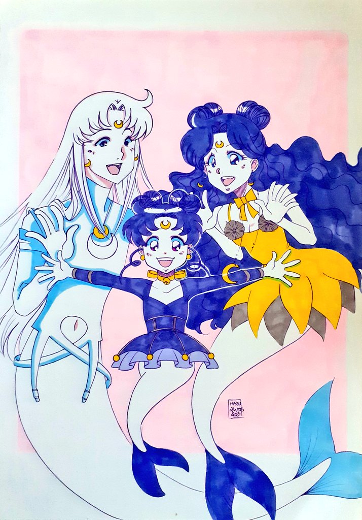 Day 24 : Luna, Artemis and Diana 3 pour le prix d'un ! Celui-là m'a bien amusée ! Diana est super choupi à dessiner ! #sailor_mermay #mermay2021 #mermaychallenge #mermay #sailormoon #fanart #fanartdrawing #fanarts #magicalgirls