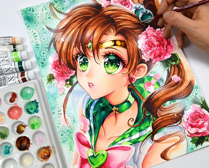 The finished colored version of my Moon Warrior Version of Jupiter. Like I said, she was the first one of this series so the costume is a bit different from the others 😊 #sailormoon #マンガ #美少女戦士セーラームーン #セーラームーン #sailorjupiter #watercolor #art #anime #art