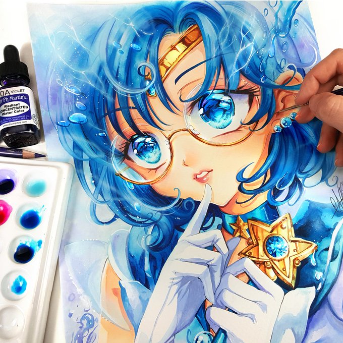 This is Amy from my Sailor Moon Portait Series. I want to draw every Soldier ^___^ can't wait for Neptune 💙💚 I hope you like it 😘 #sailormoon90s #sailormoon #sailormercury #amymizuno #sailormooncrystal #sailormoonfanart #manga #blue #traditionalart #airbrush #watercolor