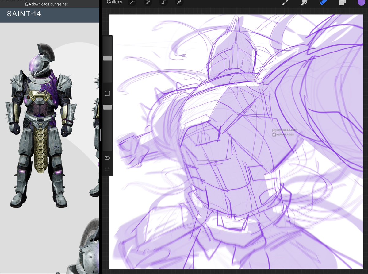 WIP Saint-14 about to head-butt 30-min doodly doo Just wanted to sketch the pose, might continue it next month depending on free time/interest 💦 #destiny2art #saint14