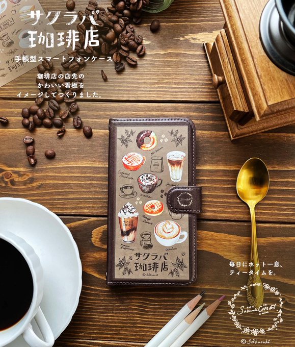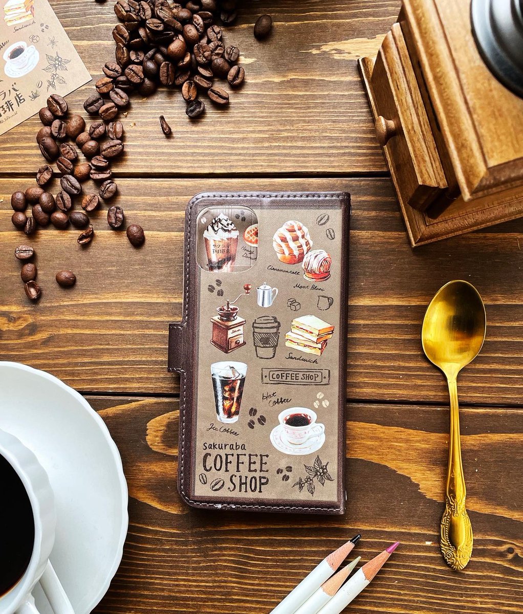 発売中の『サクラバ珈琲店』の手帳型スマホケースをご紹介します☕️ 外側は珈琲店の店先の看板デザインになっており、内側は珈琲店のメニューのようなデザインにしました🍩✨ 是非チェックしてみて下さい! 下記のURLにて販売中👇 creema.jp/creator/3551397 #sakurabaCAFE #Creema #コーヒー #イラスト