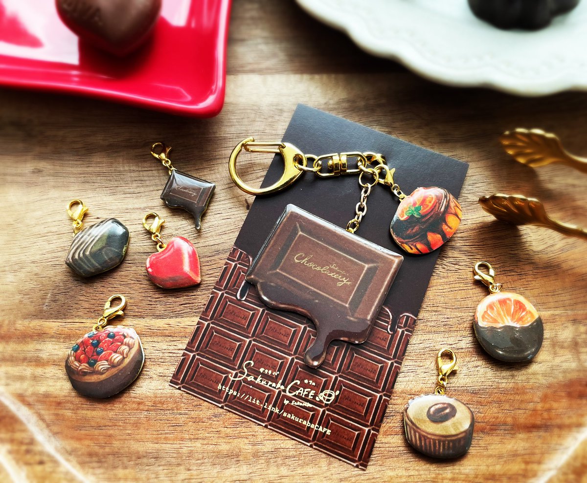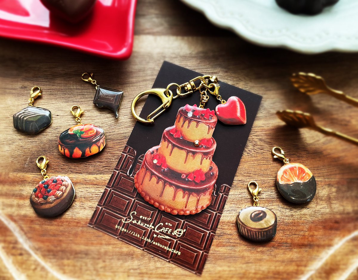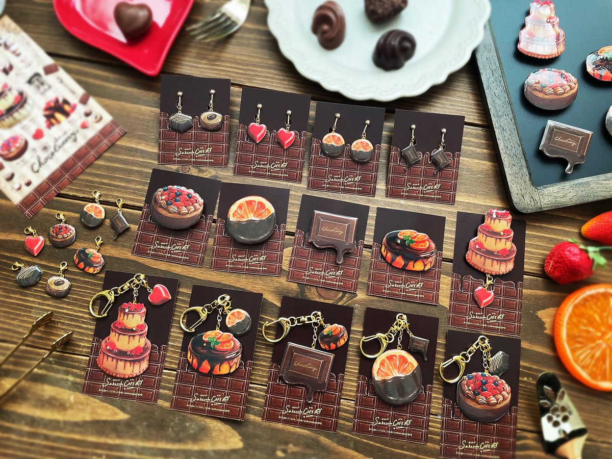 本日よりショコラトリーシリーズのアクセサリーを @minnecom と@Creema_jp で受注発売致しました🍫 宜しくお願い致します✨ 下記のURLにてグッズ販売中👇 minne:minne.com/@sakuraba16 creema:creema.jp/creator/3551397 #sakurabaCAFE #cafe #バレンタイン #チョコ #イラスト #chocolate