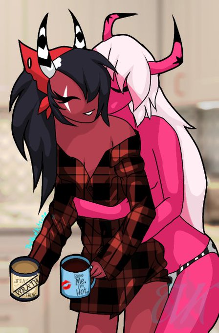 **Repost cause I was a dumb and forgot the darker pink in Vero's bangs the first time around ^^;** Random fluffy pic I decided to draw. I will never stop loving this ship. #salliemay #verosikamayday #verosika #sallie #salliemayday #helluvaboss #helluvabossfanart
