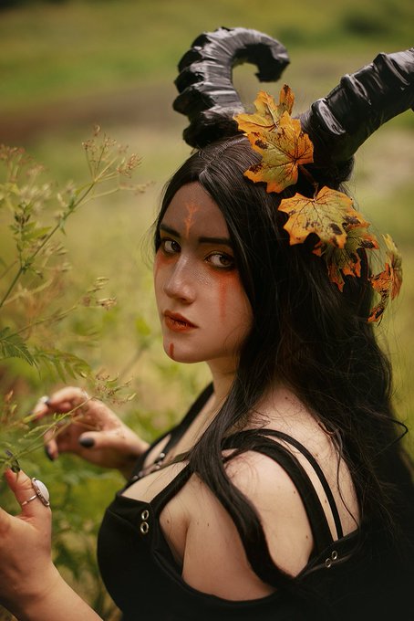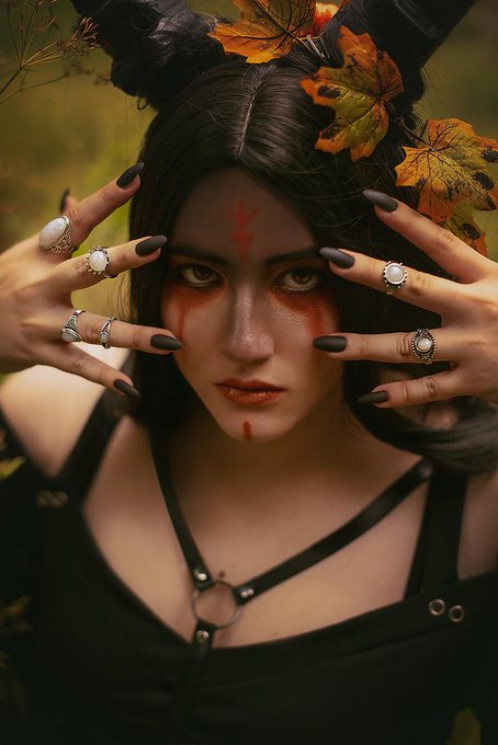 "Черные как ворон пряди заплетает, Дева вечно молодая жатву собирает." © Samhain 🍁🍂🍃 Ph : @wisekumagoro #makeup #cosplay #samhain #wheeloftheyear #колесогода #самайн