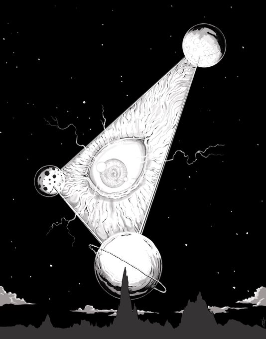 Day 27 - Three Moons #samtober + initial sketch. #scifiart #mangaart #inktober #inktober2021 #inktoberprompts #blackandwhite #procreateart #mangastyle #moon