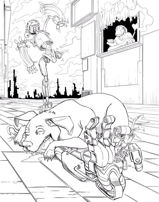 Day 5 of #samtober2022 : Dreaming. I had to do a Kim Jung Gi tribute, the patron saint of daydreaming and drawing whatever the hell you want, who unfortunately passed away today. One of the best. #inktober #digitalink #manga #kimjunggi #ink #blackandwhite