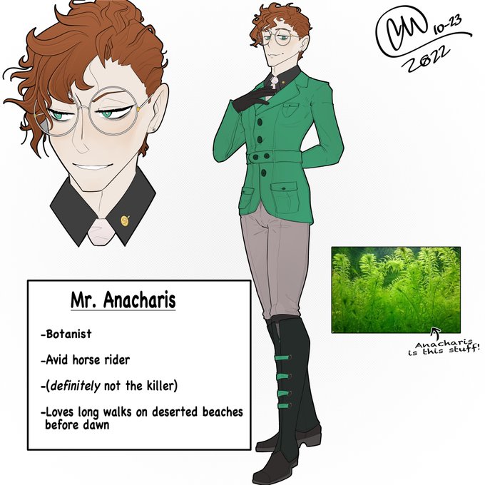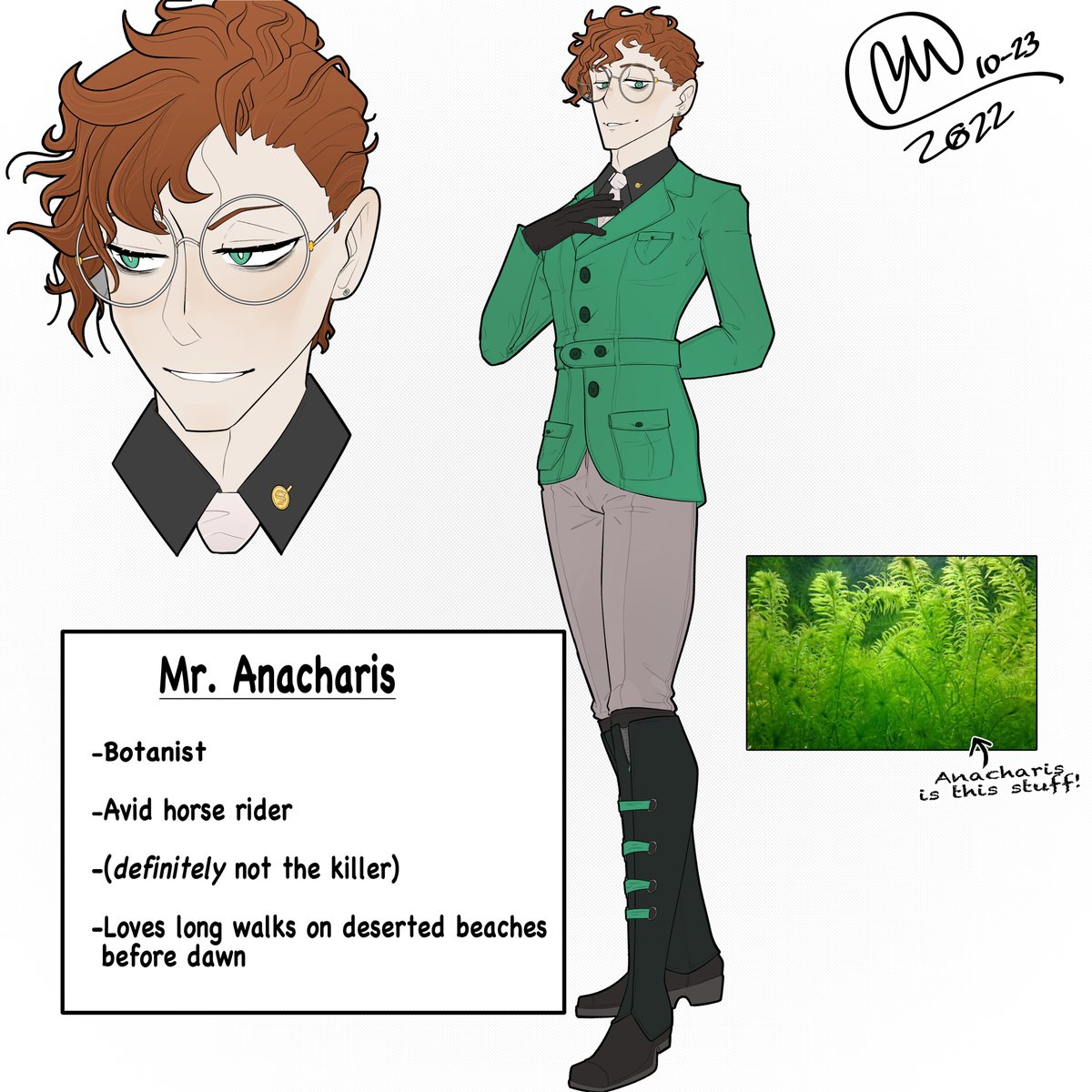 @ThomasSanders Day 23: My new Clue character, who acts suspicious no matter if he's innocent. Did a random color generator and I got a sea-green. #inktober #sanderstober