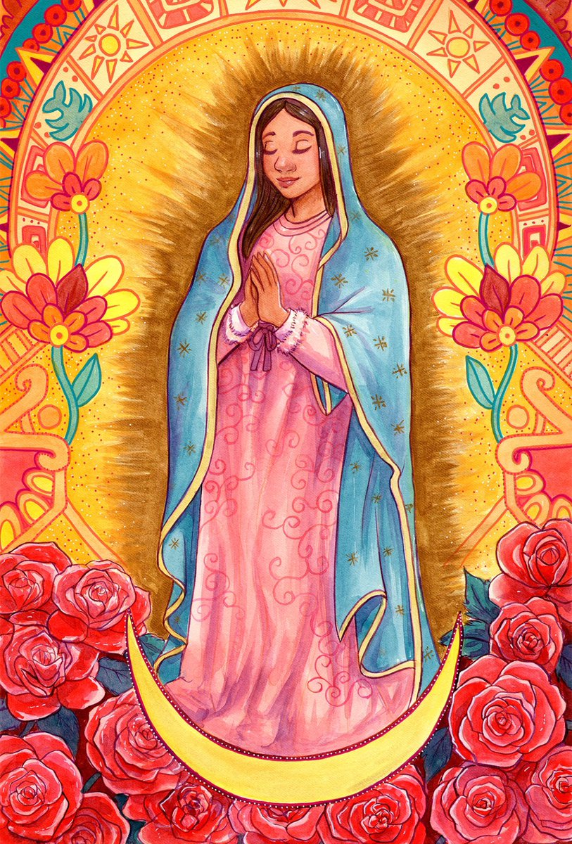 Feliz #DiaDeMuertos ! Here are my pieces for the @andgallerytucson Lore show last month! I had Día de Los Muertos in mind. Prints are available at &Gallery! #DiaDeLosMuertos #santamuerte #lavirgindeguadalupe #watercolor #mixedmedia #mexicanculture #magiablanca