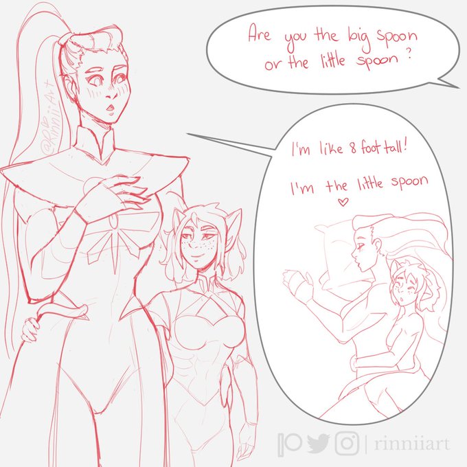The description of "Adora cuddles like it's an Olympic sport" in any fic is one of my favourites, and I imagine it looks like this. Octopus style cuddling. #catradora #spop #shera #sheraandtheprincessesofpower #spopfanart #sherafanart #artistontwitter #fanart #sapphicart