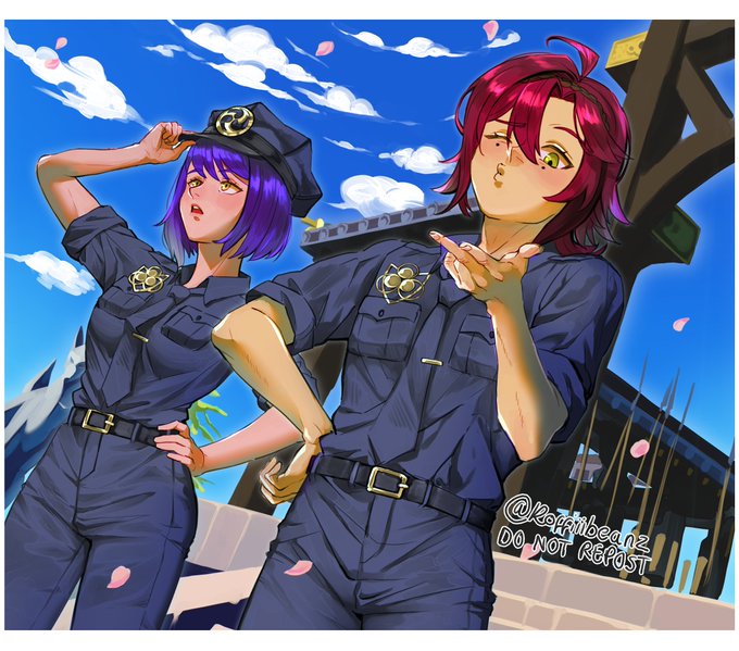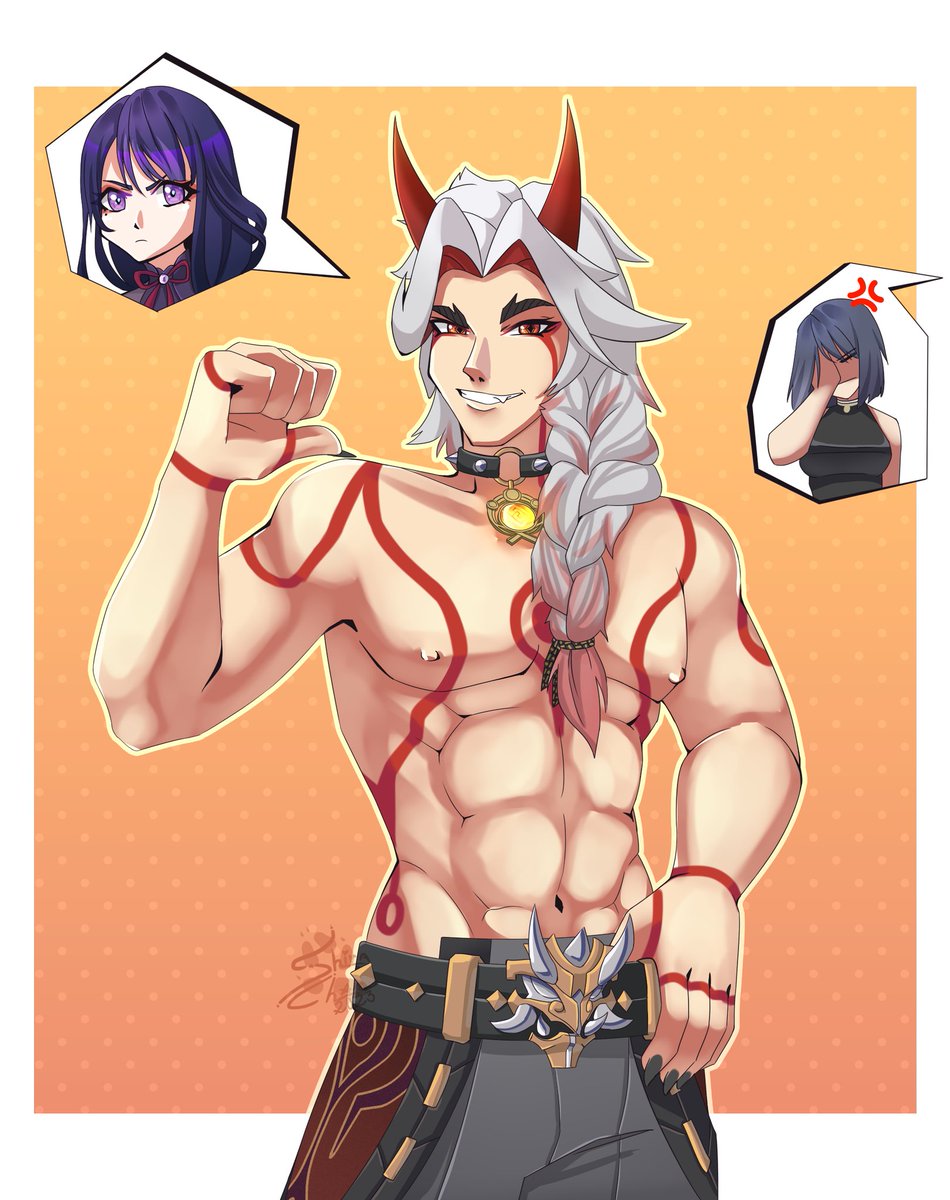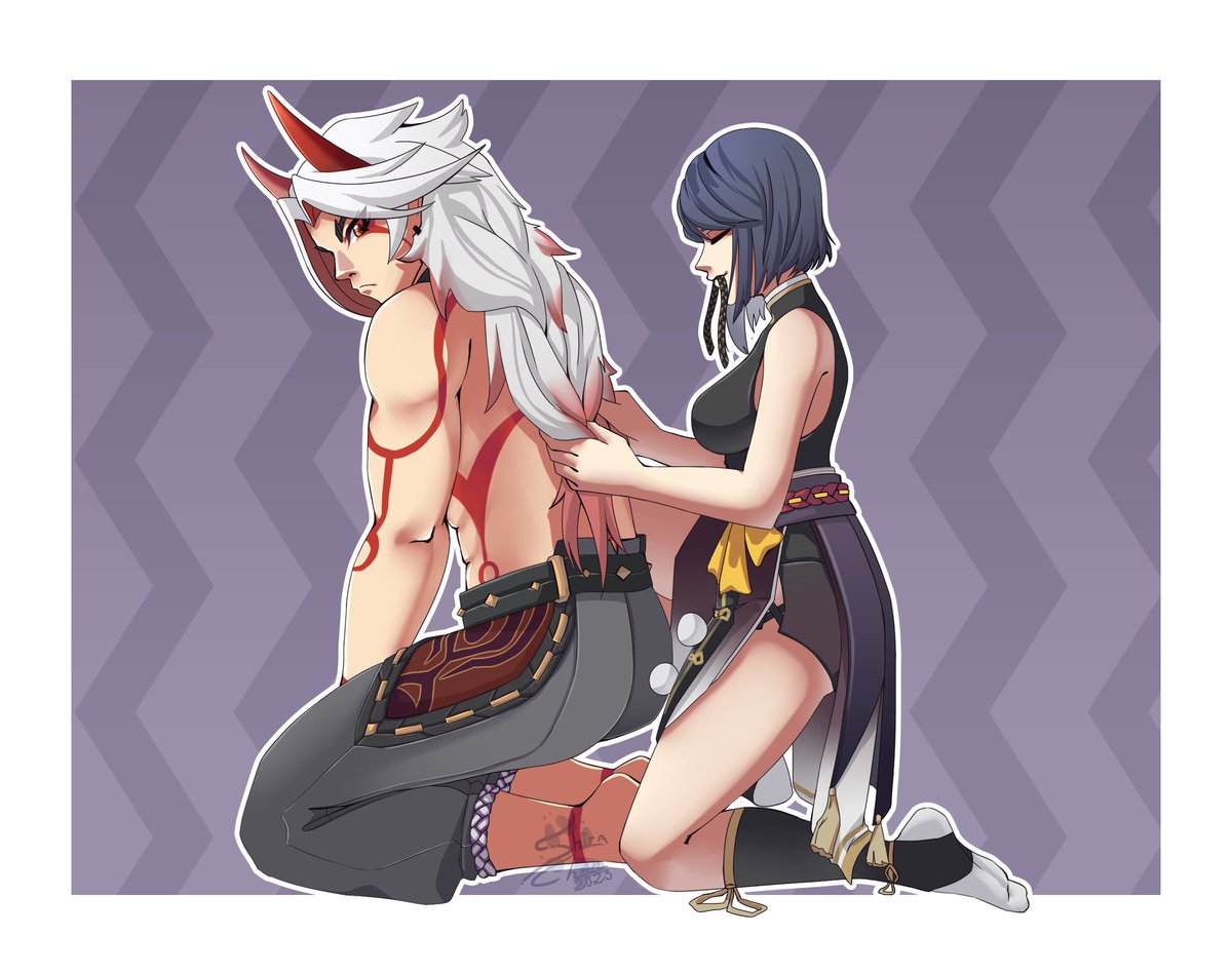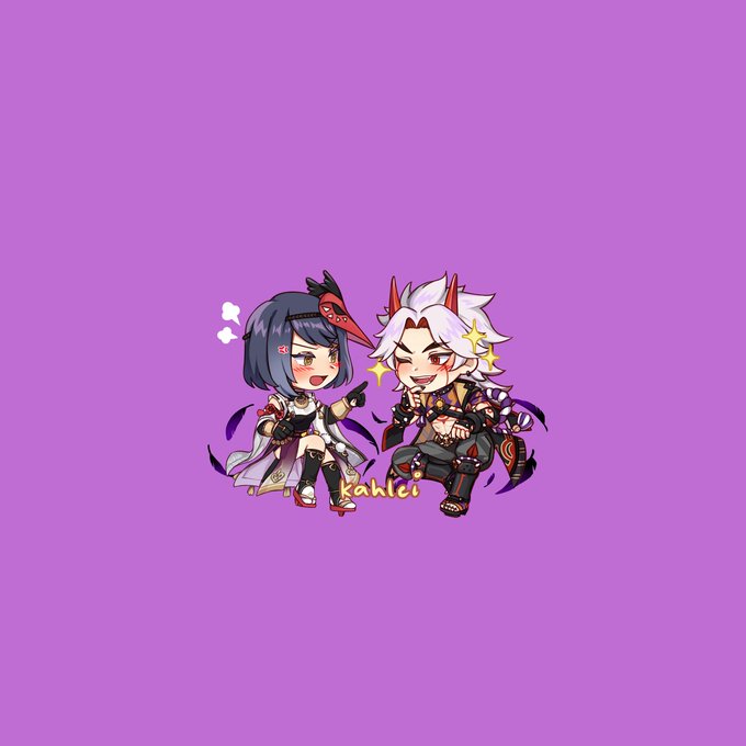 A small picture of ittosara, I promised my friend to finish them for a long time and now the little hands have reached #ittosara #Itto #Sara #Genshinlmpact #kujousara #aratakiitto #Inazuma #art #fanart