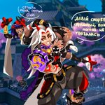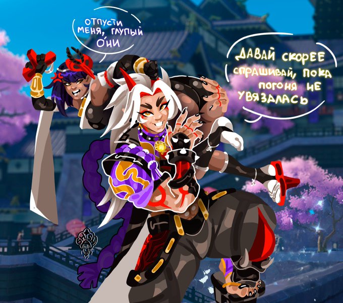 Sara: — Let me go you stupid Óny! Itto: — Come on, ask quickly before the chase gets bogged down #GenshinImapct #Genshinfanart #AratakiItto #Itto #ittosara #kudzesara #sara