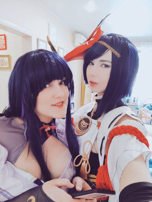 I can't post this in Inst :c Si, first look on our Baal/Sara outfits! @Inikatsu #cosplay #GenshinImpact #genshin #genshincosplay #kujousara #sara #RaidenShogun #eisara #Baal #RaidenEi #sarabaal