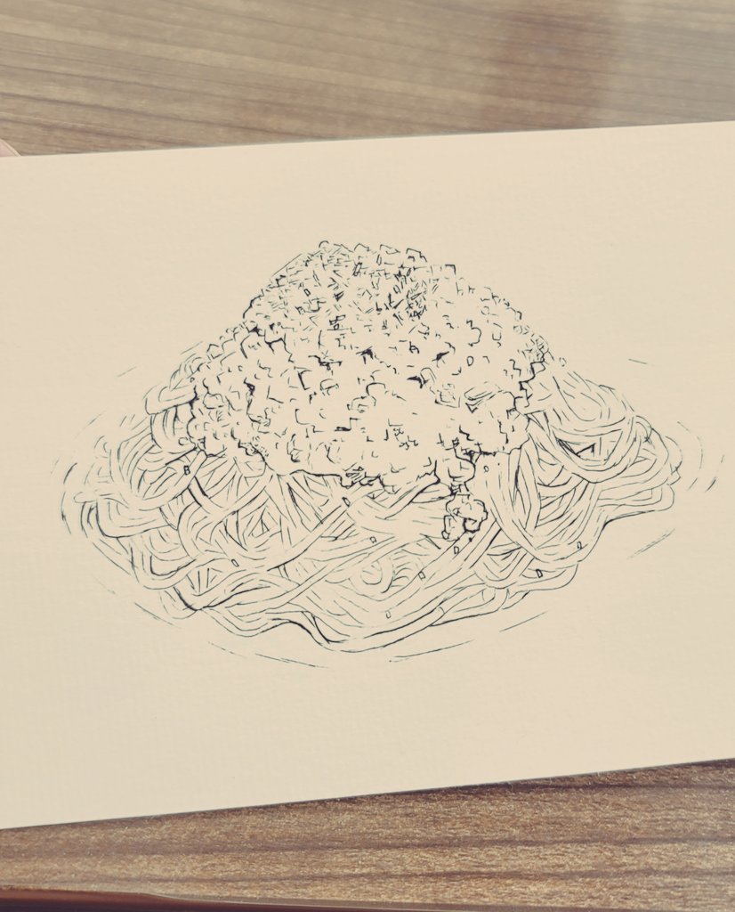 正解は、スパゲッティーミートソースでした。#sarasaclip 0.3㎜ #ペン画 #pendrawing #foodillustration twitter.com/ymmtymmt0901/s…